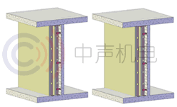 復合隔聲墻體是最常用的隔聲裝置,可有效的防止噪聲通過墻壁對外圍造成影響。復合結構設計,可使墻面的面密度降低,并增加墻體的隔聲量。中聲公司的隔聲墻體產品十分豐富,根據建筑材料的特性,我們的墻體主要采用石膏板與水泥板兩種隔聲材料,隔聲量在35-57dB(A)之間。 |